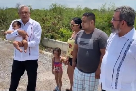 Junto al Subsecretario de Infraestructura de la Secretaría de Comunicaciones y Transportes, Jorge Nuño Lara, el mandatario se detuvo en una carretera donde se acercó una familia, con quienes grabó el video que difundió en redes sociales. “Pero miren lo que nos encontramos aquí, esta familia, y esta nena que se llama Maya (la cual llevaba en brazos), que es bellísima. Ya aquí se está reuniendo mucha gente, ya no voy a poder continuar”, señaló.