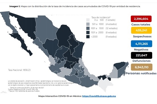 Hasta este domingo se reportan 2 millones 582 mil 573 casos estimados de Covid-19, un millón 914 mil 101 recuperados y 221 mil 647 defunciones, 50 más que ayer. Los casos confirmados incrementaron en mil 274 para un acumulado de 2 millones 396 mil 604.