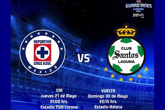 El partido de ida se llevará a cabo en Torreón, en punto de las 9 PM (tiempo del centro de México), mientras que la vuelta se efectuará tres días más tarde a las 8:15 PM en el Coloso de Santa Úrsula.