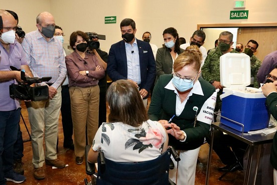 En el Centro de Convenciones de la Benemérita Universidad Autónoma de Puebla, el subsecretario de Educación Superior (SEP), Luciano Concheiro Bórquez y la representante del Instituto Mexicano del Seguro Social (IMSS) en Puebla, Aurora Treviño García, atestiguaron el inicio de la aplicación de la vacuna CanSino.