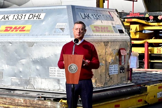Un nuevo lote con 114 mil 660 vacunas contra covid-19 de la farmacéutica Pfizer llegó en un vuelo al Aeropuerto Internacional de la Ciudad de México como parte del plan nacional de vacunación del gobierno federal.