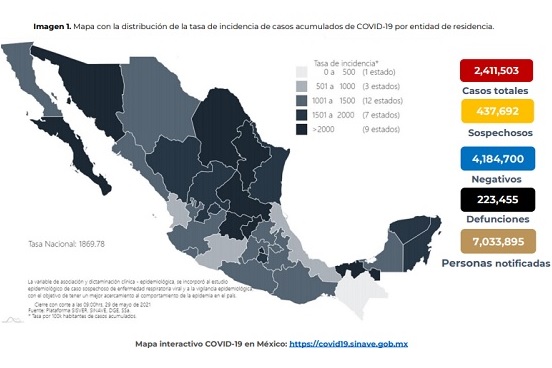 Cifras presentadas por López Ridaura indican que 1 millón 924 personas han superado la enfermedad y que en total 223 mil 455 más han perdido la vida, 387 más que la víspera. Además, la ocupación hospitalaria se ha reducido en un 87 por ciento con respecto al punto de mayor actividad de la epidemia. Los casos confirmados incrementaron en 2 mil 725 para una acumulado de 2 millones 411 mil 503.