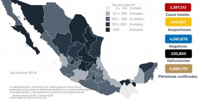 Ssa reporta 2 mil nuevos casos Covid-19 y llegan a 220,850 las defunciones