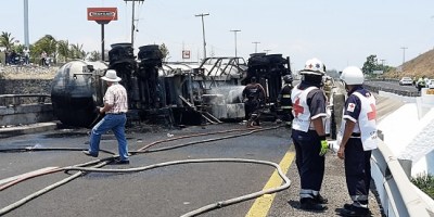 Voltea pipa de gasolina en carretera Veracruz – Cardel y explota (VIDEOS)