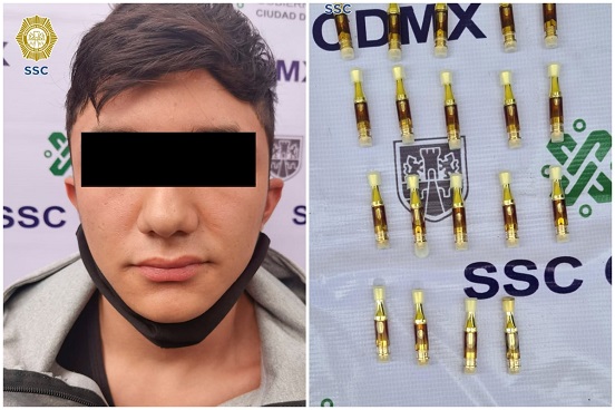 Al joven de 18 años de edad, le encontraron 19 pipas de wash, que contenían aparente mariguana en su presentación líquida, por lo que fue detenido, enterado de sus derechos de ley y puesto a disposición del agente del Ministerio Público quien determinará su situación jurídica.