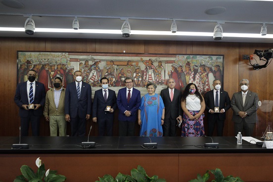 En la reunión estuvieron la presidenta de la Comisión de Relaciones Exteriores América Latina y el Caribe, Beatriz Paredes Rangel, y la senadora María Celeste Sánchez Sugía, de Morena.