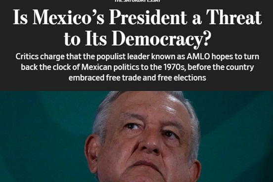 Escrito por David Luhjow y José Córdoba, el artículo publicado este 4 de junio, titulado: “¿Es el presidente de México una amenaza para la democracia”, los analistas señalaron que “los críticos acusan que el líder populista conocido como AMLO espera hacer retroceder el reloj de la política mexicana a la década de 1970, antes de que el país aceptara el libre comercio y las elecciones libres?”.