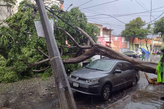 También se registró la caída de un árbol de 15 metros de alto que cayó sobre un auto y una camioneta sobre la calle de Fresno, casi esquina con Eligio Ancina, en la colonia Santa María la Rivera.