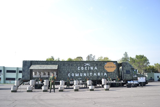 En caso de ser necesario el empleo de una cocina comunitaria en coordinación con las autoridades civiles de cada entidad federativa, se suministrarán los recursos necesarios para que el personal militar proporcione la alimentación en las poblaciones afectadas; cabe destacar que cada una de las cocinas se encuentra en capacidad de proporcionar 7,500 alimentos diarios.