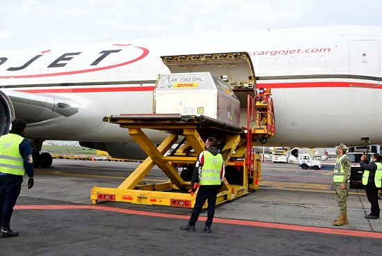 Con este embarque proveniente de Cincinnati, Estados Unidos, la farmacéutica ha entregado un total de 19 millones 903 mil 065 dosis al país, que han sido aplicadas a personal de salud, personas mayores de 60 años, de 50 a 59 años, de 40 a 49 años y mujeres embarazadas mayores de 18 años con al menos nueve semanas de gestación.