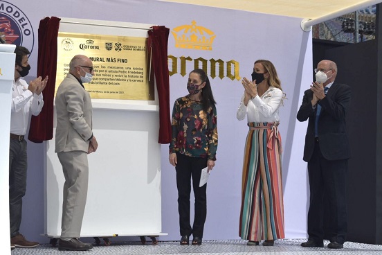 En el evento estuvieron presentes el secretario de Turismo, Carlos Mackinlay Grohmann; el titular de la Agencia Digital de Innovación Pública (ADIP), José Antonio Peña Merino; el presidente de Grupo Modelo, Cassiano de Stefano; la directora de Cerveza Victoria, Yune Aranguren; la directora de Corona México, Clarissa Pantoja, y el artista, Pedro Friedeberg, quien elaboró el “Mural más Fino” .