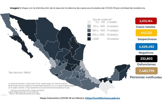 En el Reporte Técnico Diario sobre el estado de la pandemia, la Secretaría de Salud (Ssa), registró un incremento de 5 mil 711 casos, en comparación con los reportados este lunes, con un total de 2 millones 513 mil 164 contagios confirmados por laboratorio. Las muertes por el nuevo coronavirus también se incrementaron en 195, con un acumulado de 232 mil 803.