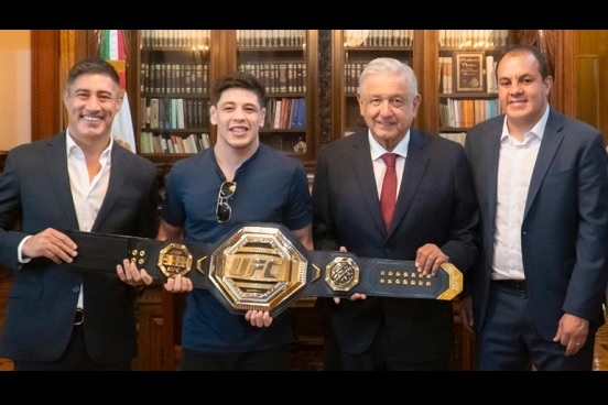 El jefe del Ejecutivo reconoció el esfuerzo y la disciplina del peleador de artes marciales mixtas originario de Tijuana, Baja California, quien es el primer mexicano en obtener el campeonato en esta liga.