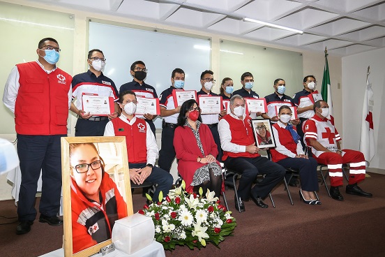 Durante la ceremonia de entrega de constancias se rindió homenaje póstumo a la médica cirujana, Arisbet Díaz Muñoz, quien cursó el diplomado y falleció por secuelas de la Covid-19. Estuvo presente el coordinador estatal de capacitación, Alfonso Adrián Salas Lomelí; la coordinadora estatal administrativa, Silvia Olivares Escudero, y el coordinador estatal de socorros, Francisco Javier Rodríguez Abarca, todos de Cruz Roja Mexicana Estado de México.