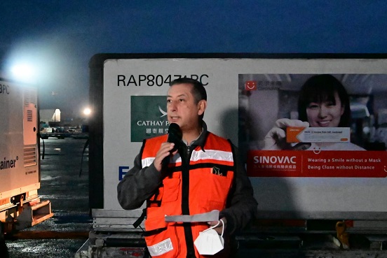 El embarque de hoy llegó en punto de las 6:01 h, en el vuelo CX96 de la aerolínea Cathay Pacific, proveniente del Aeropuerto Internacional de Beijing, China, con escala en Hong Kong. En conjunto con anteriores embarques de Sinovac hacen un total de 11 millones de dosis.