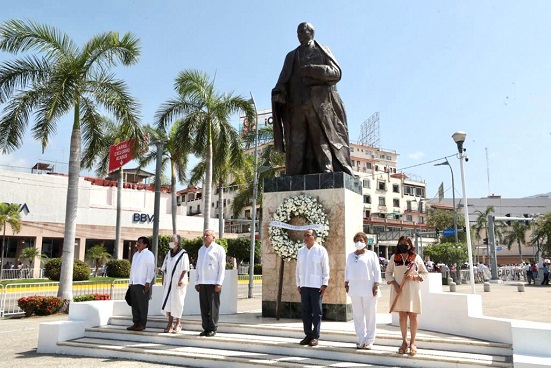 En el malecón de Acapulco, Guerrero, depositó una ofrenda y montó guardia de honor en el monumento al Benemérito de las Américas.