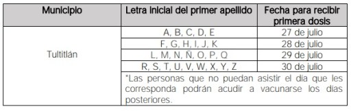 La inmunización se llevará a cabo en un horario de 9:00 a 17:00 horas, con base en el siguiente calendario:
