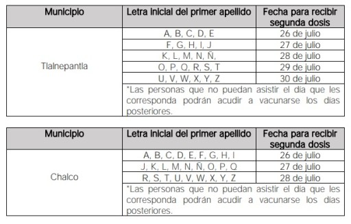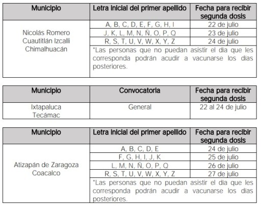 La ubicación de las sedes, horarios y requisitos se puede consultar en el sitio web http://edomex.gob.mx/vacunacion.
