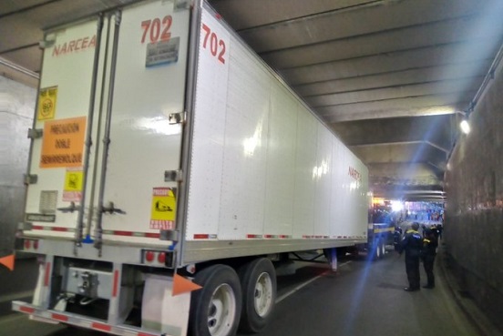 Las unidades de doble semirremolque se desplazaban al municipio de Tepotzotlán en el Estado de México, pero debido a la altura de las cajas no lograron pasar en la zona del bajo puente.