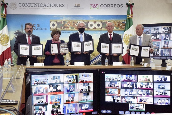 En el acontecimiento, los titulares de los 31 Centros SCT y gerentes estatales de Sepomex en el país cancelaron simultáneamente la estampilla.