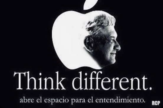 La publicación acompañaba una imagen en la que aparecía el rostro del presidente, Andrés Manuel López Obrador (AMLO) en lado derecho, y en el izquierdo una manzana, -similiar a la que uso Apple en su campaña de 1997- con la leyenda “Think different, abre el espacio para el entendimiento”.