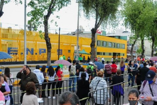 Para evitar mayores problemas, personal del gobierno de la CDMX colocó cartulinas en la Prepa 9, en donde informan que sólo se permitiría el acceso a la vacunación a las personas que muestren su credencial del INE con domicilio en la alcaldía Gustavo A. Madero.