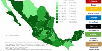 Ssa reporta 6 mil 506 nuevos casos Covid-19 y llegan a 241,279 las defunciones