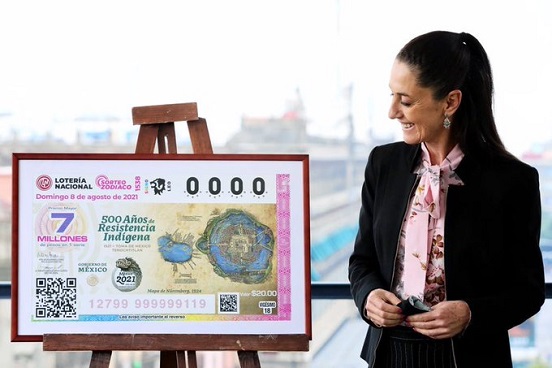 La Jefa de Gobierno, Claudia Sheinbaum Pardo, encabezó la develación del billete de la Lotería Nacional con motivo de los 500 años de la Resistencia Indígena México-Tenochtitlan del sorteo que se realizará el próximo domingo 8 de agosto a las 20:00 horas y contempla un premio mayor de 7 millones de pesos en una serie.
