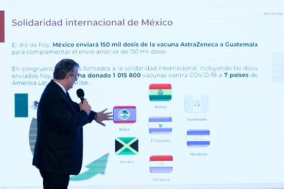 El canciller dijo que México ha apoyado con vacunas a Belice Bolivia, Guatemala, El Salvador, Honduras, Paraguay y Jamaica.