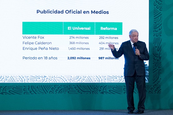 El mandatario añadió que, además de lo recibido en publicidad oficial, El Universal recibió créditos de Nacional Financiera.