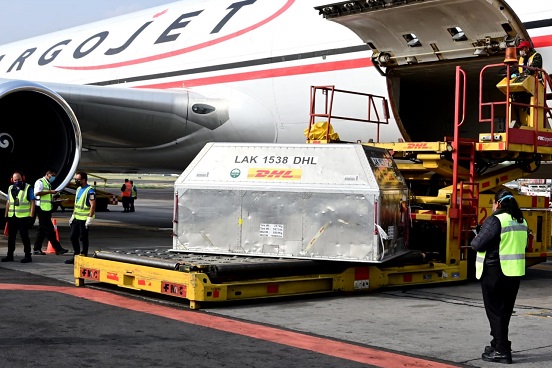 A las 9:19 h de este miércoles arribaron a México 585 mil vacunas envasadas de Pfizer-BioNTech, en el vuelo CJT952, procedente de Cincinnati, Estados Unidos.