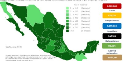 Ssa reporta 21 mil 569 nuevos casos Covid-19 y llegan a 243,165 las defunciones