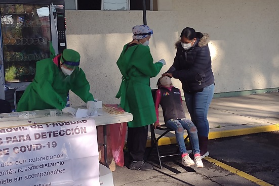 El Instituto de Salud del Estado de México (ISEM) aplicó este lunes 700 pruebas rápidas de detección de Covid-19 en el estacionamiento del Gimnasio Universitario «Adolfo López Mateos».