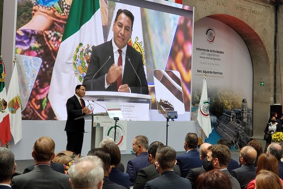 Previamente, a través de un video, Eduardo Ramírez informó que durante este año en el Senado se han realizado 67 sesiones, en las que se aprobaron nueve leyes de nueva creación, 15 reformas constitucionales, 74 reformas a ordenamientos vigentes y se emitieron 22 otros decretos.