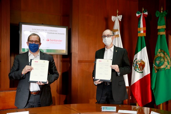 La Universidad Autónoma del Estado de México (UAEM) y Grupo Santander de México firmaron un convenio de colaboración y contrato de donación para fortalecer la infraestructura de la Escuela de Artes Escénicas y elevar la calidad educativa a favor de la comunidad estudiantil de la máxima casa de estudios de la entidad.