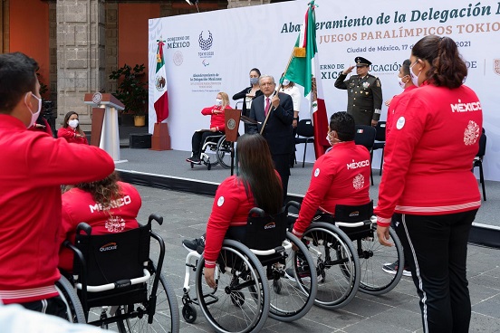 El presidente Andrés Manuel López Obrador encabezó en Palacio Nacional la ceremonia de abanderamiento de la delegación mexicana que participará en los XVI Juegos Paralímpicos de Tokio 2020.