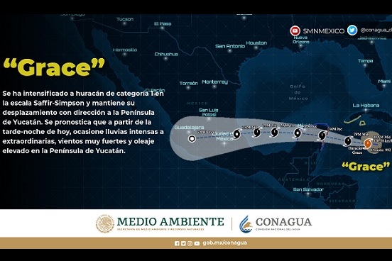Durante la primera actualización de las 8 de la mañana de la trayectoria del fenómeno hidrometeorológico, el gobernador destacó que la Tormenta presenta 115 km de radio por lo que se prevé que todo el estado presente afectaciones por lluvias, principalmente en la zona norte y centro de Quintana Roo, así como oleaje de hasta 4 metros de altura lo que provocará la suspensión de cruces y navegación de embarcaciones menores conforme se acerque “Grace” a las costas del estado.