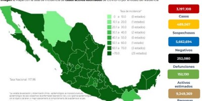 Ssa reporta 21 mil 897 nuevos casos Covid-19 y llegan a 252,080 las defunciones. Se da a conocer semáforo epidemiológico