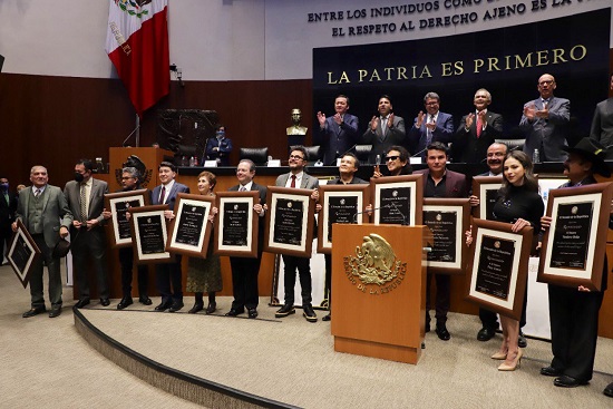 En tanto, Ricardo Monreal Ávila expresó que este día el Senado se vistió de gala y abrió sus puertas a artistas, autores y compositores para entregarles un justo reconocimiento, porque le han dado a nuestro país prestigio en el mundo, talento y alegría.