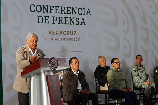 El presidente Andrés Manuel López Obrador encabezó la presentación del informe de acciones que el Gobierno de la Cuarta Transformación lleva a cabo para atender a las y los habitantes de los 62 municipios de Veracruz afectados por el huracán Grace el pasado fin de semana.