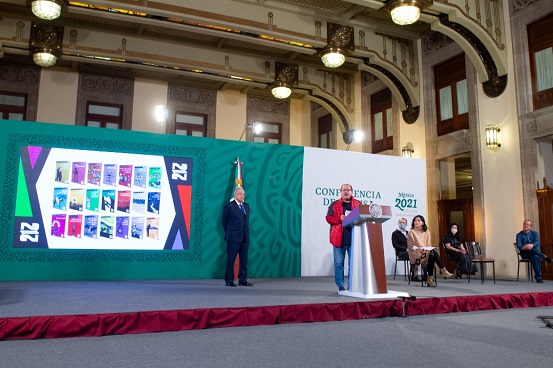El presidente Andrés Manuel López Obrador presentó la colección ’21 para el 21′ del Fondo de Cultura Económica (FCE), relacionada con los 700 años de la fundación de México-Tenochtitlán, los 500 años de la invasión extranjera y los 200 años de la Independencia.
