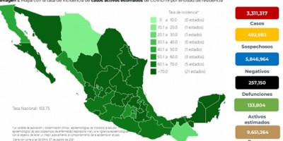 Ssa reporta 19 mil 556 nuevos casos Covid-19 y llegan a 257,150 las defunciones