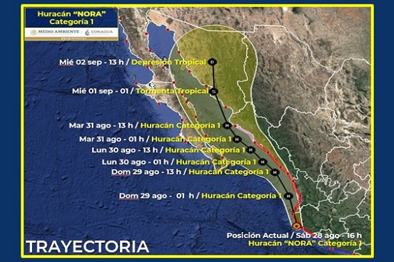 Según datos del Sistema de Alerta Temprana para Ciclones Tropicales (SIATCT), el ahora huracán Nora afectará varios estados con lluvias, oleaje elevado y fuertes vientos.