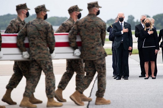 Biden viajará a la Base de la Fuerza Aérea Dover en Delaware para encabezar el ritual militar de recibir los restos de tropas caídas en combate en el extranjero.