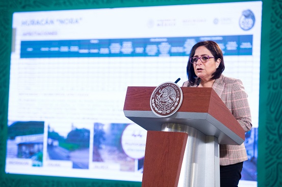 Laura Velázquez, coordinadora nacional de Protección Civil, informó que «Nora» se degradó esta madrugada a una baja presión remanente y generó afectaciones en 44 municipios en seis estados.