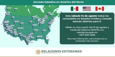 Las 57 oficinas consulares de México en América del Norte abrirán sus puertas el próximo sábado 14 de agosto para ofrecer pasaportes, matrículas consulares y credenciales para votar