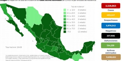 Ssa reporta 17 mil 546 nuevos casos Covid-19 y llegan a 257,906 las defunciones