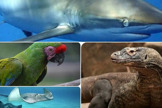 Cerca del 28% de las especies están consideradas en la actualidad bajo amenaza, entre ellas el 37% de todas las especies de tiburones y rayas, el dragón de Komodo, el atún rojo, entre otros.