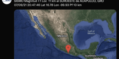 Se registra sismo de 7.1 grados con epicentro en Acapulco, Guerrero