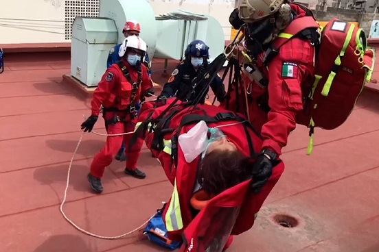 La operación se realiza a bordo del helicóptero de Rescate 1 con matrícula XC-ERA, a cargo del Capitán Piloto Aviador Cisneros, así como de los Paramédicos rescatistas Adrián Rivera y Amaury Bernáldez, así como el Operador de sistema Joel Alvarado.